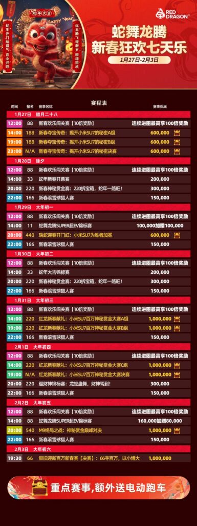 春节激战红龙,解锁神秘赏金,驾驭小米SU7,开启蛇年新程!